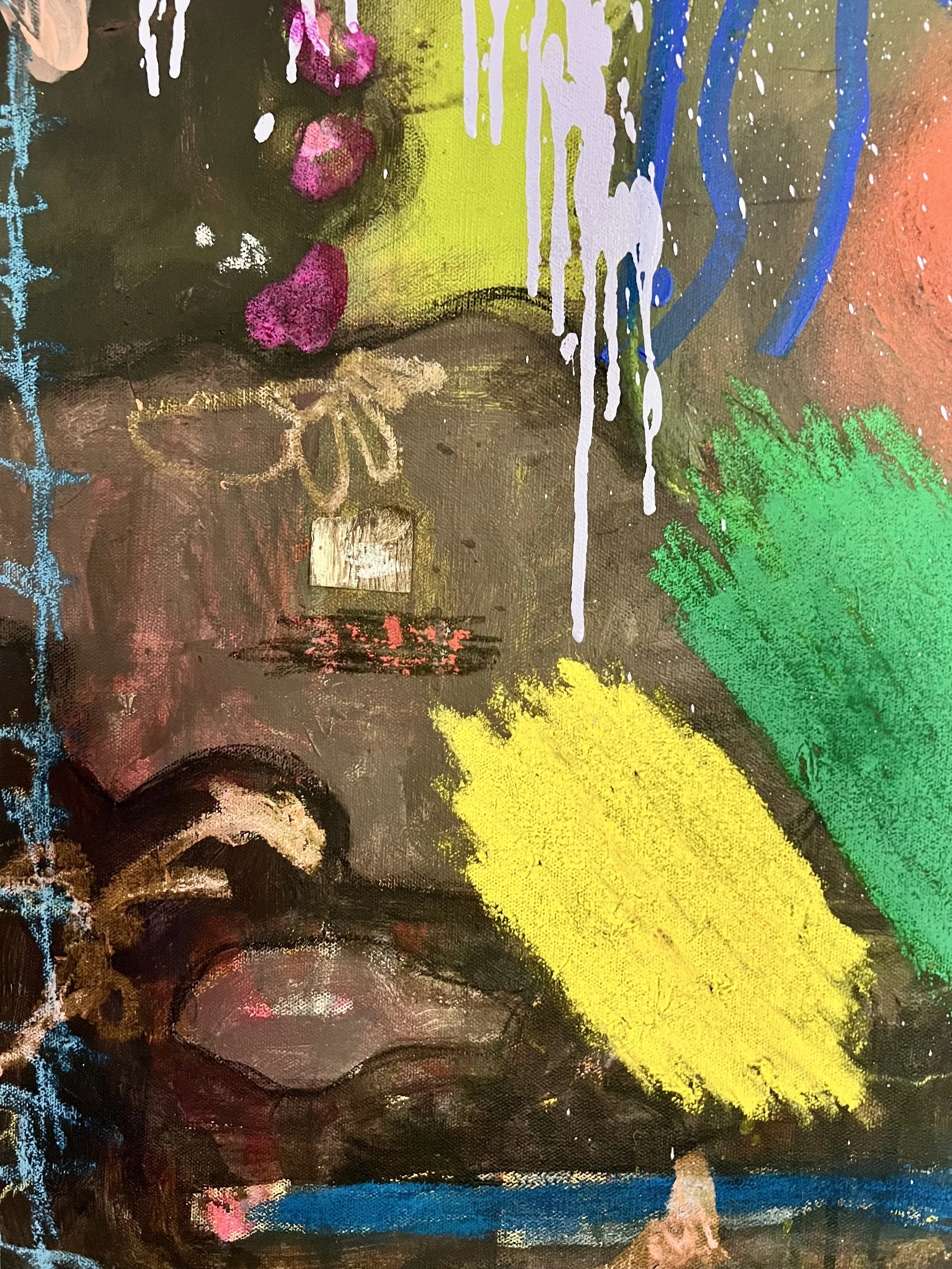 Known for layering unexpected materials and punchy palettes, Alexa’s style walks on the line between expression and rebellion. Think: abstract playground meets art therapy with a splash of cosmic mischief. Her art is a little loud, a little weird and completely intentional.